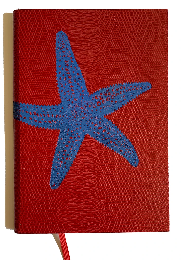 GBP – 45 - A bright red notebook embossed with the imprint of a starfish