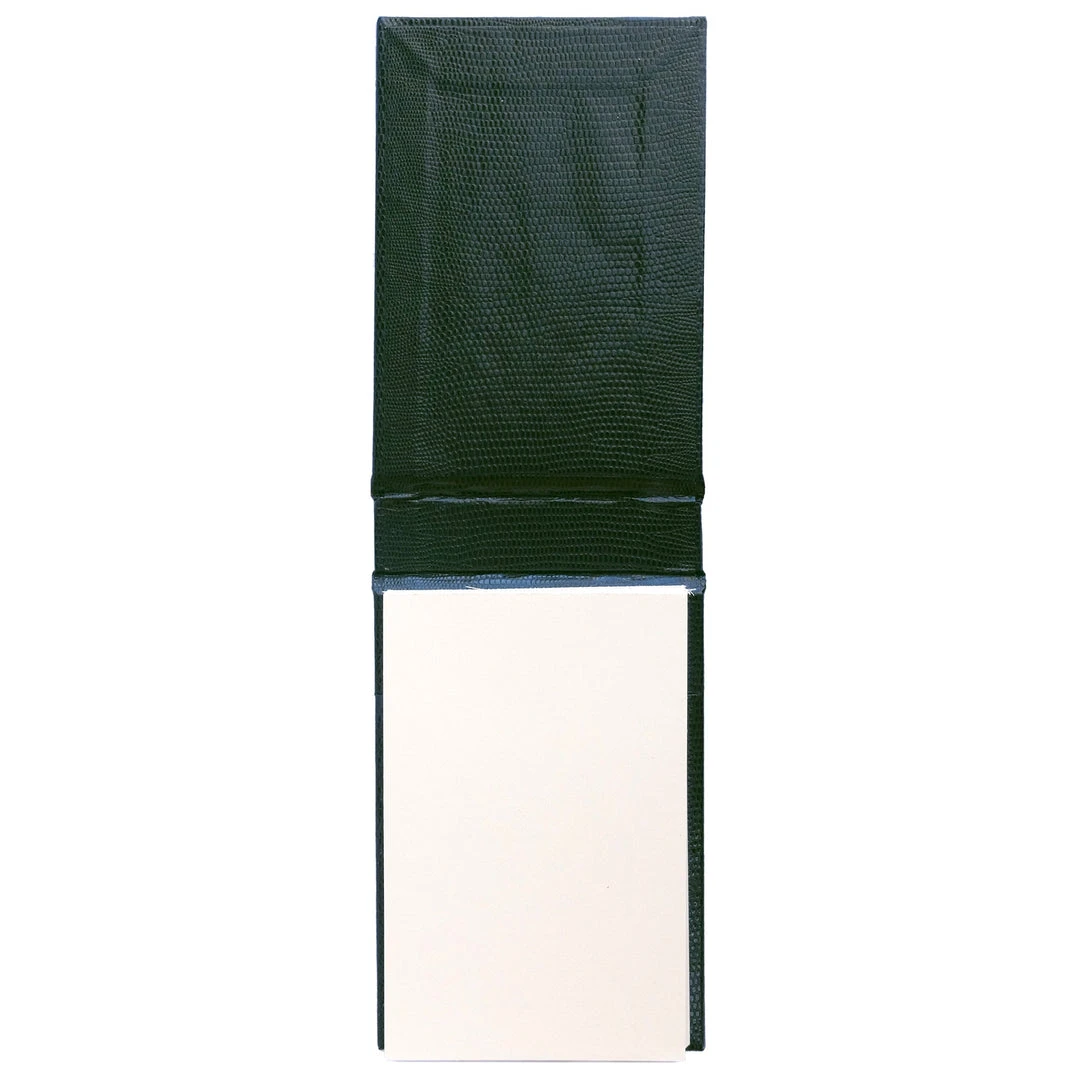 Covered in beautiful lizard embossed card with gold embossing, each notepad is handmade in England by classically trained craftsmen.