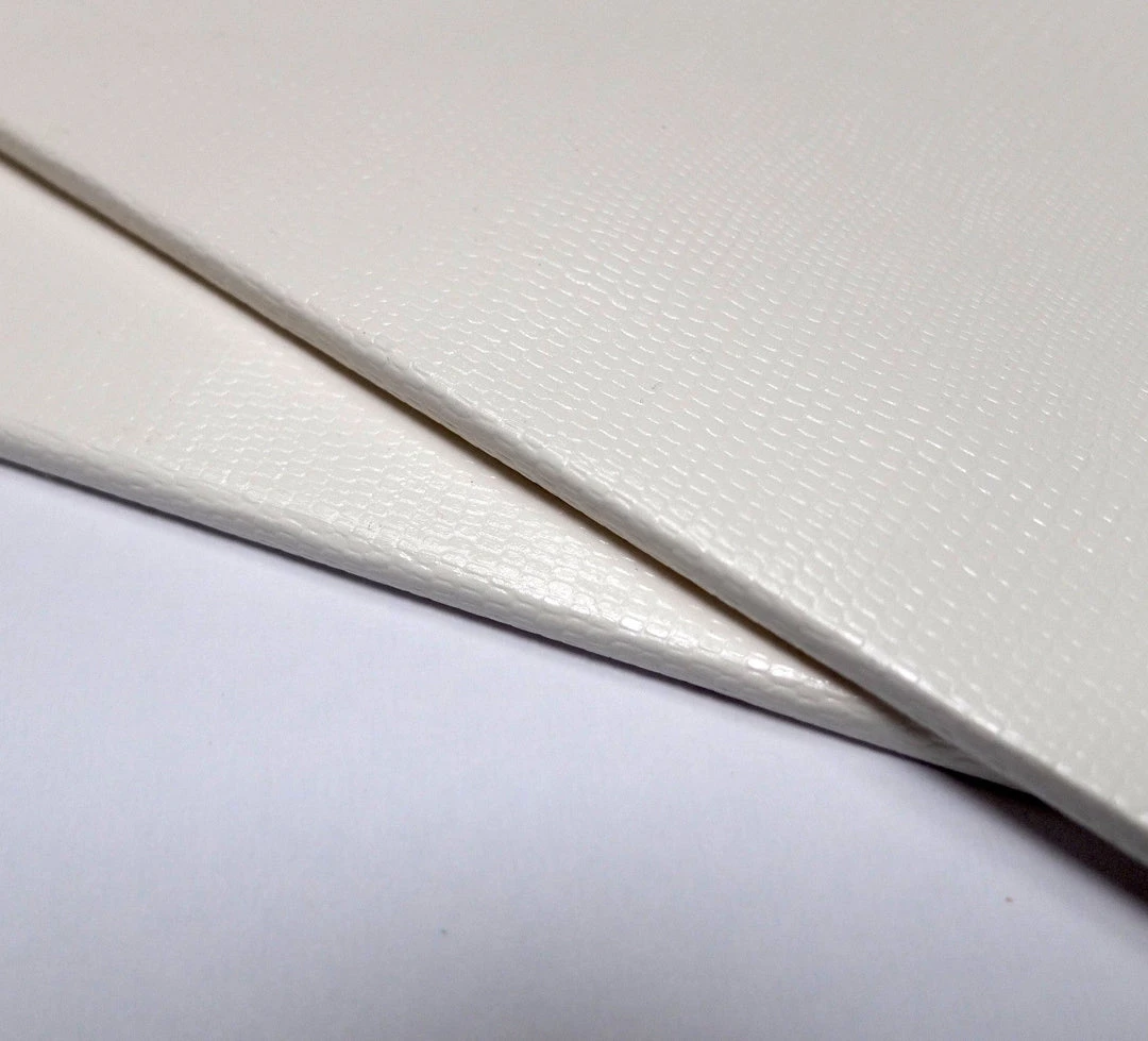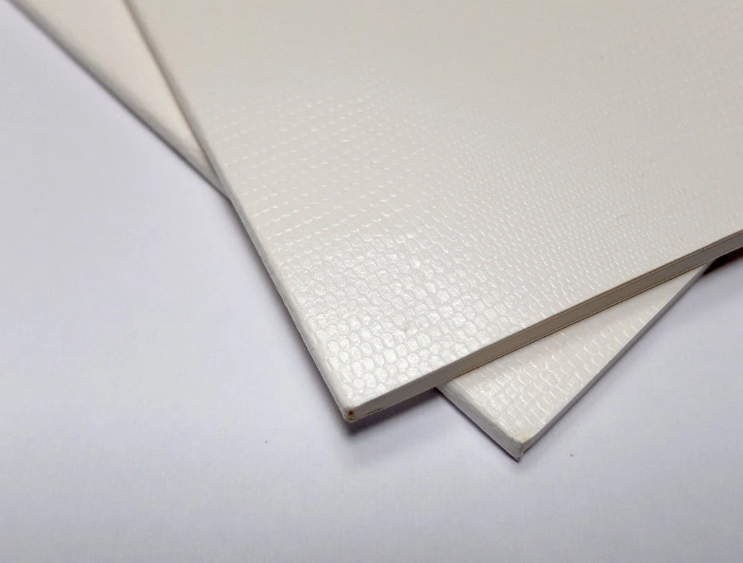 Soft flexible cover, lined pages, and saddle stitched in colour, lizard texture card.