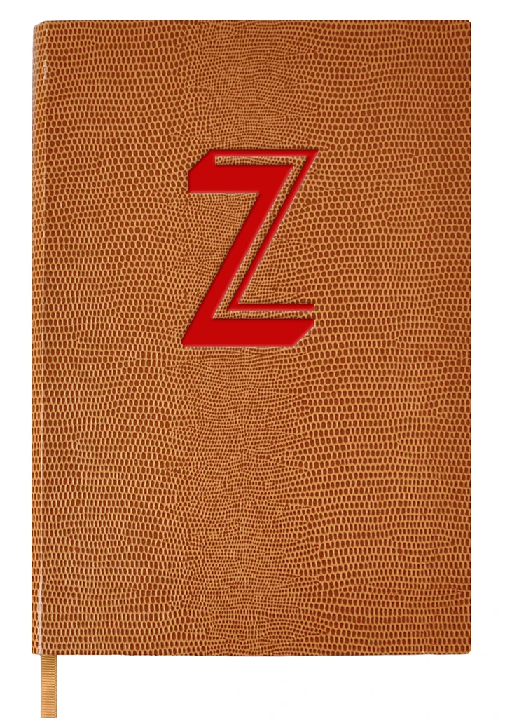 Silver-edged unlined cream paper covered in lizard-embossed card with a page marker grosgrain ribbon. Our hardcover books are handmade in England by classically trained craftsmen; available in any of our signature colours. Please contact us here if you would like us to make this item in a different colour.Â
