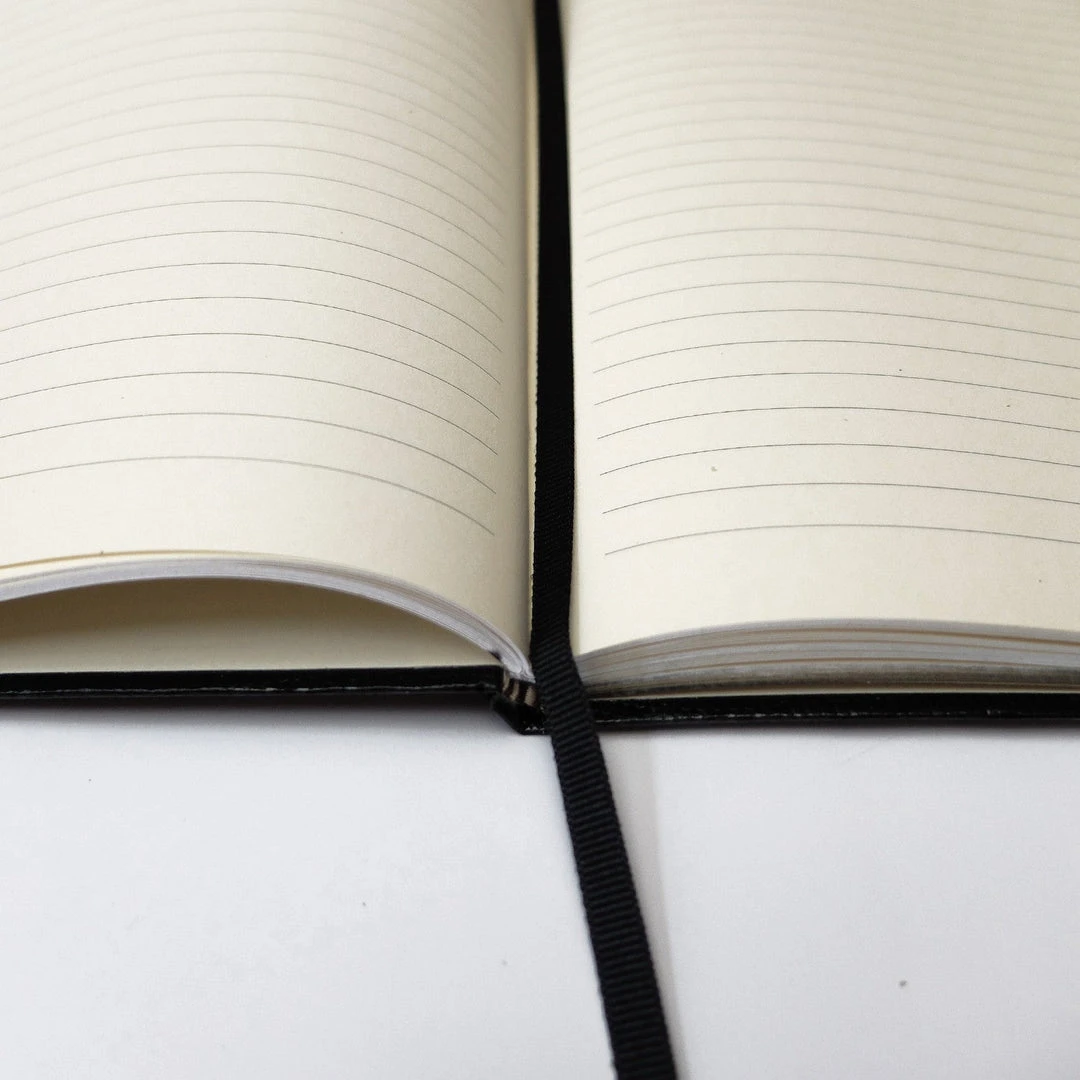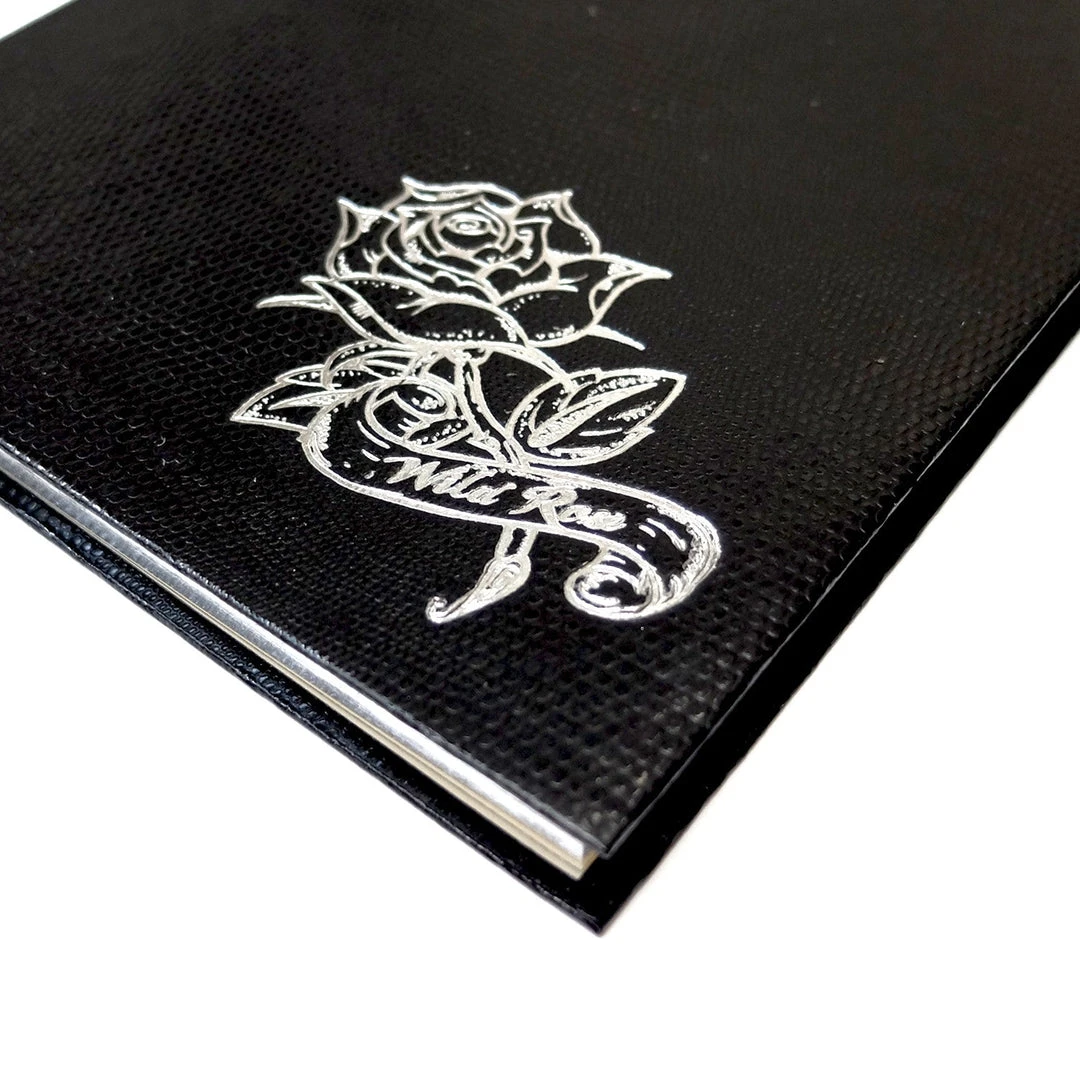 Available in black with silver embossing.