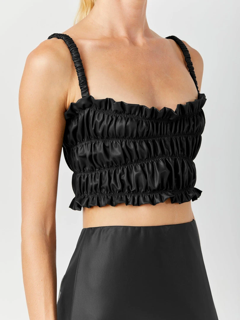 Sweet yet sexy, this top commands attention with a sweetheart neckline and cropped fit that hits just above the navel.