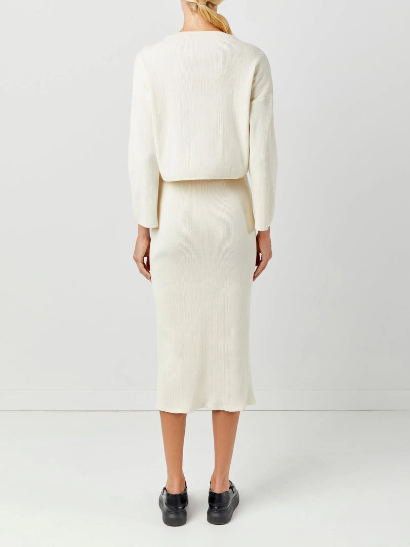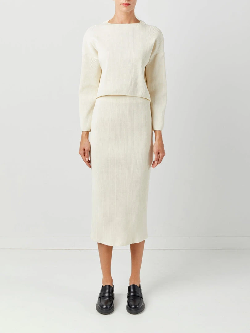 The perfect modern daytime outfit, our ribbed top and skirt set is as comfortable as it is chic.