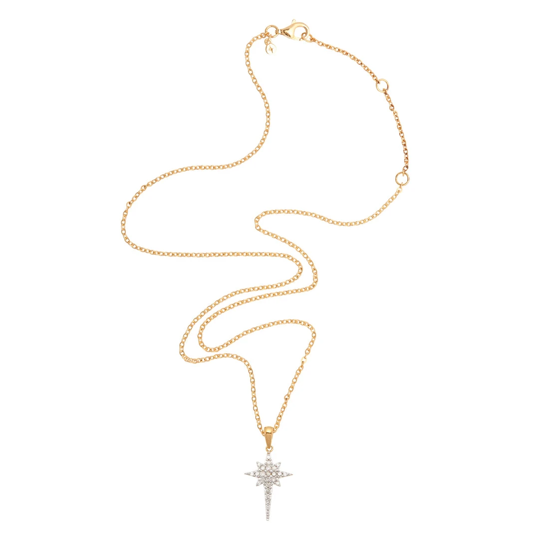 - Set in 22ct gold vermeil with white diamonds on an adjustable 16-18″ chain