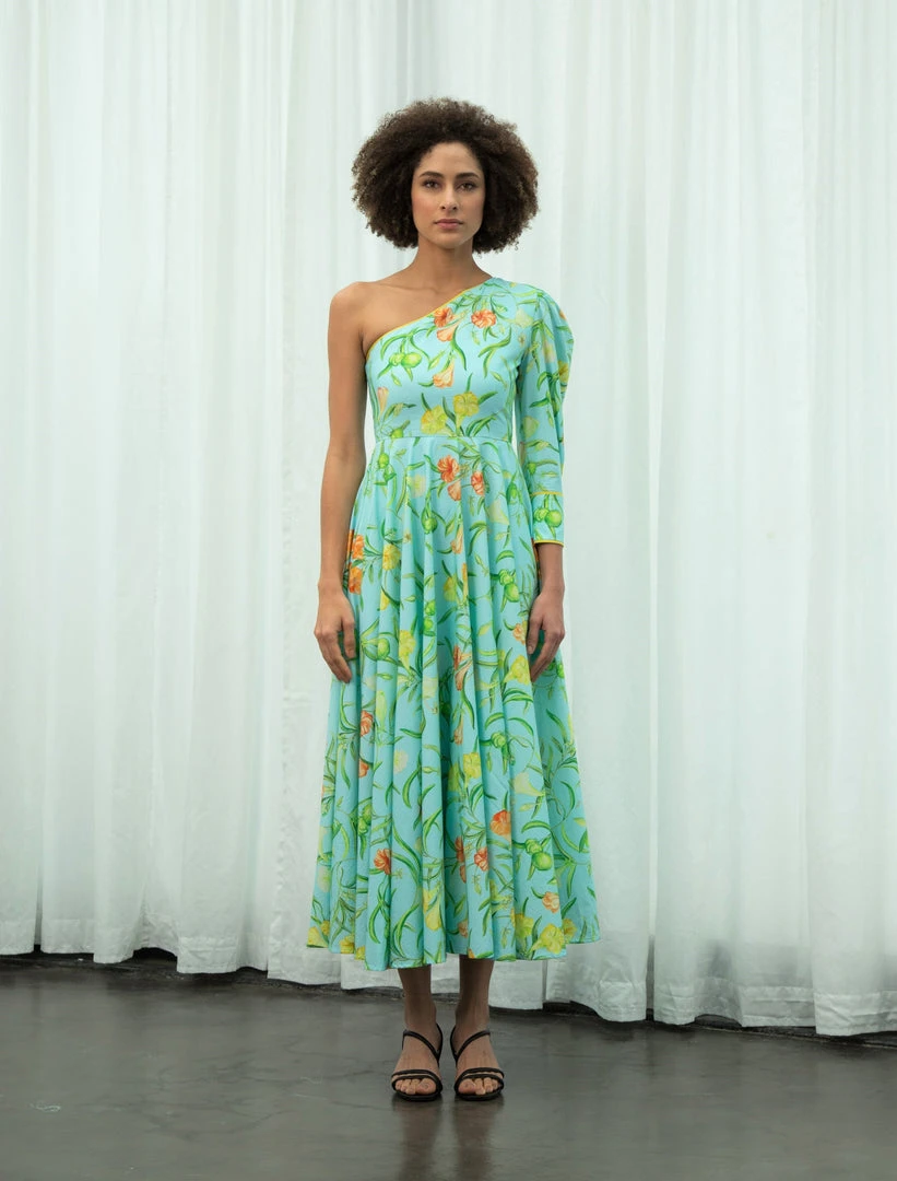 Sruti Dalmia Calling All Colors One-Shoulder Maxi Dress