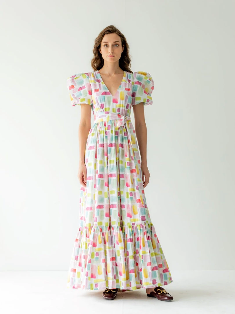 Whether its street shopping at souks, lunch date with bae, a children’s party or a trip to the farmer’s market, this chic dress is ideal for all such escapades. With details like statement puffed sleeves, ruffles, detachable belt that ensures the right fit and pockets (Yes, you read that right!), it seamlessly marries fun and grace in one dress. Keep the styling eclectic with quirky accessories and white sneakers for that picture-perfect Instagram look.