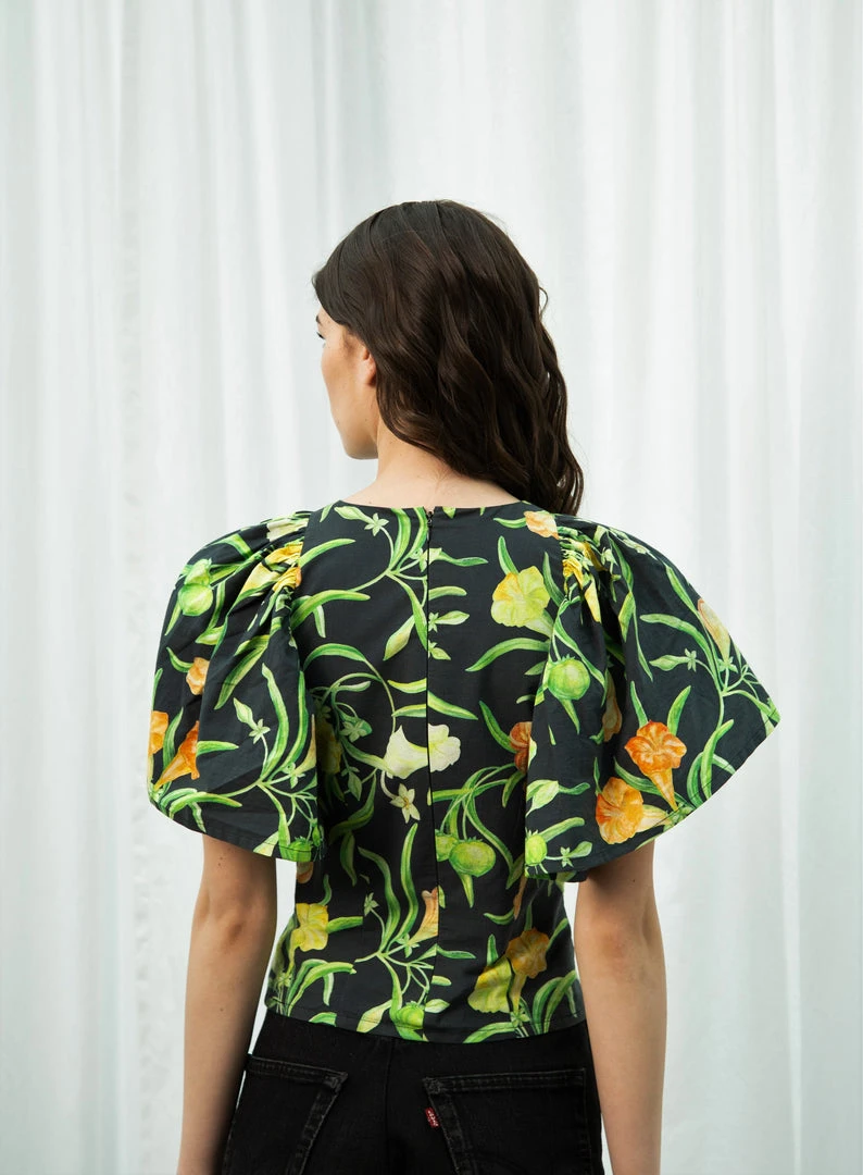 Cut from fine-spun organic cotton fabric and printed with bold Kaner flower-inspired designs this top sets the highest bar for sun-soaked style. A medley of floral and contemporary silhouette imbues this top with romance and flair. Style it with black trousers, ankle boots, or heels for a show-stopping seasonal ensemble. The take me to your workplace, or show me a good time on the beach top you’ll basically be eating, lazing, and working in this summer. Crafted with soft organic cotton fabric and designed with butterfly sleeves, this top’s floral print calls to mind our most beloved seasonal blooms.