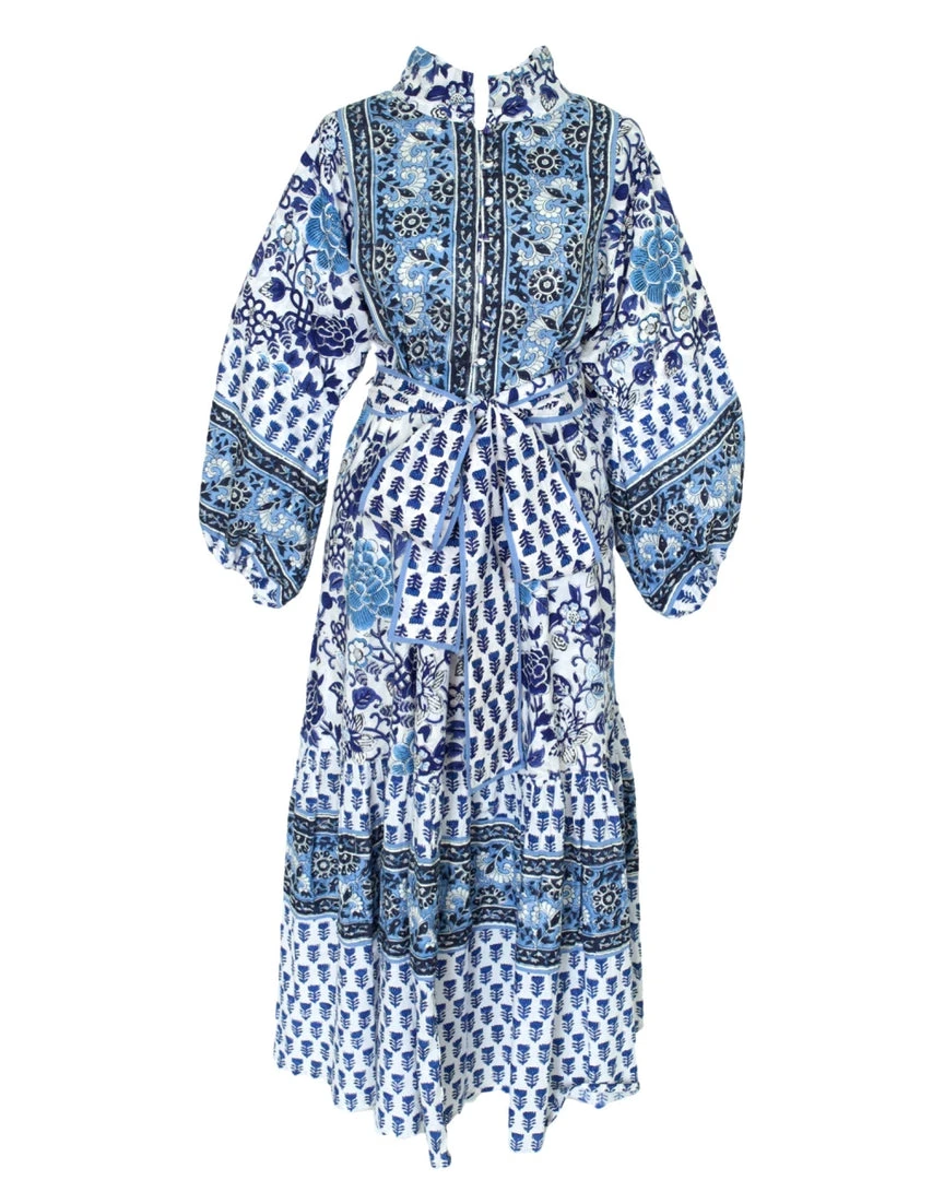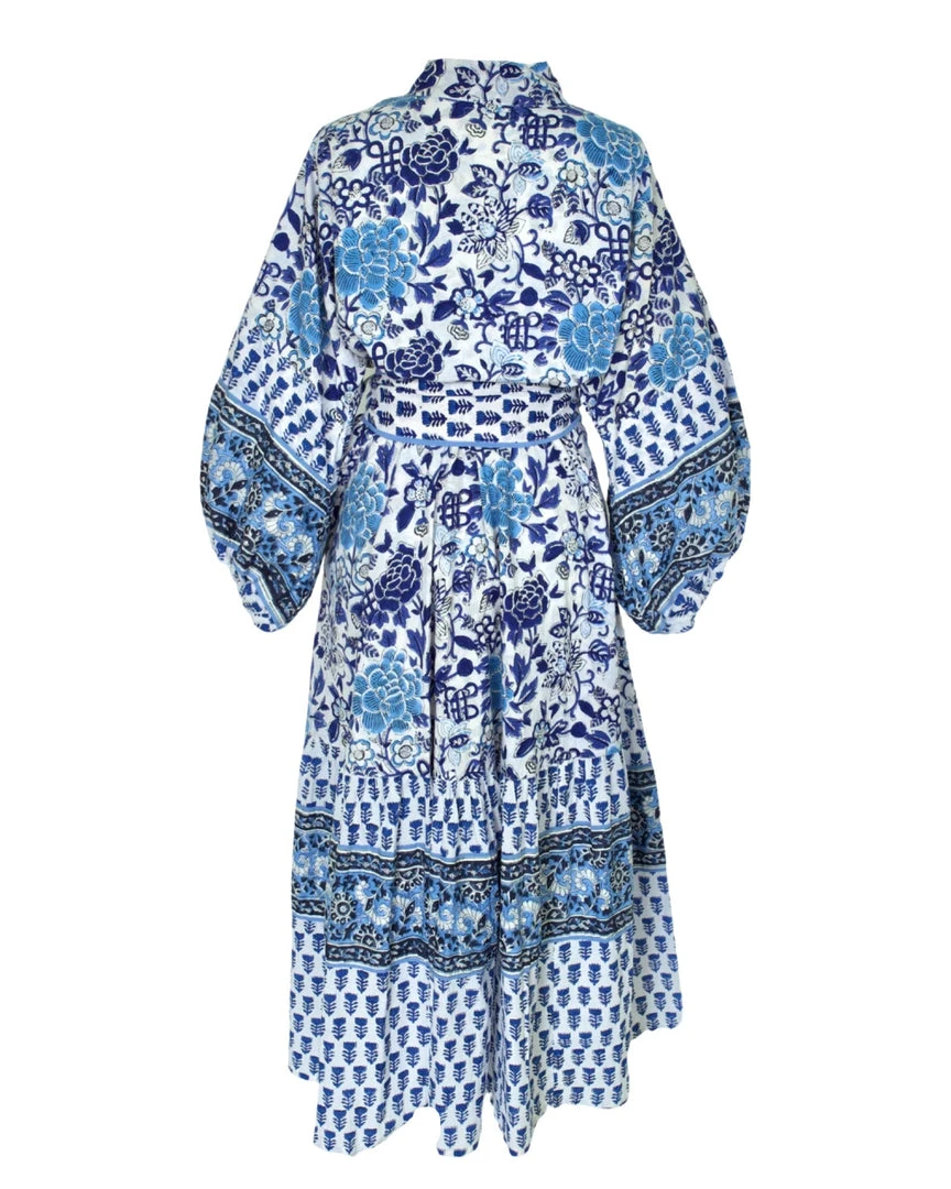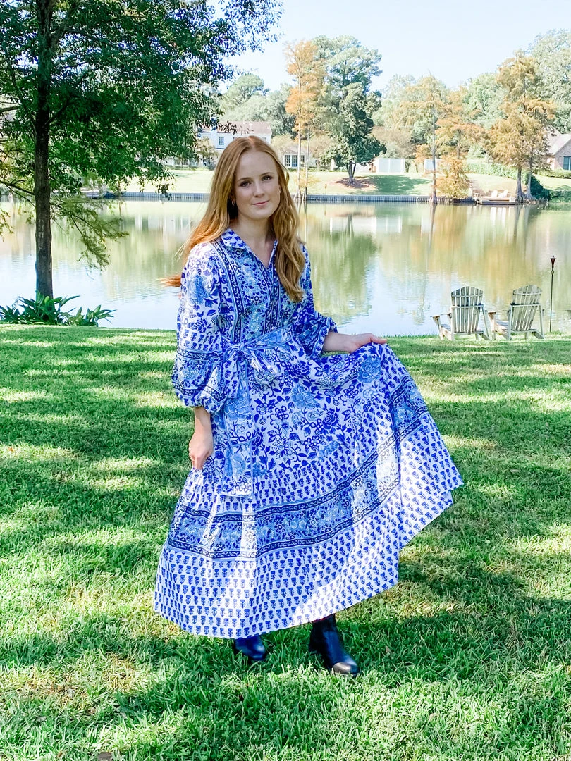 This timeless chinoiserie inspired blue & white Paloma is like an art piece! She is a classic 4 season workhorse dress and is perfect for special events, art openings, showers and more! The Paloma will take you everywhere you want to go! It is hand pieced and piped in this classic gorgeous blue floral combination. The hand~piping is in the softest grey blue delft.