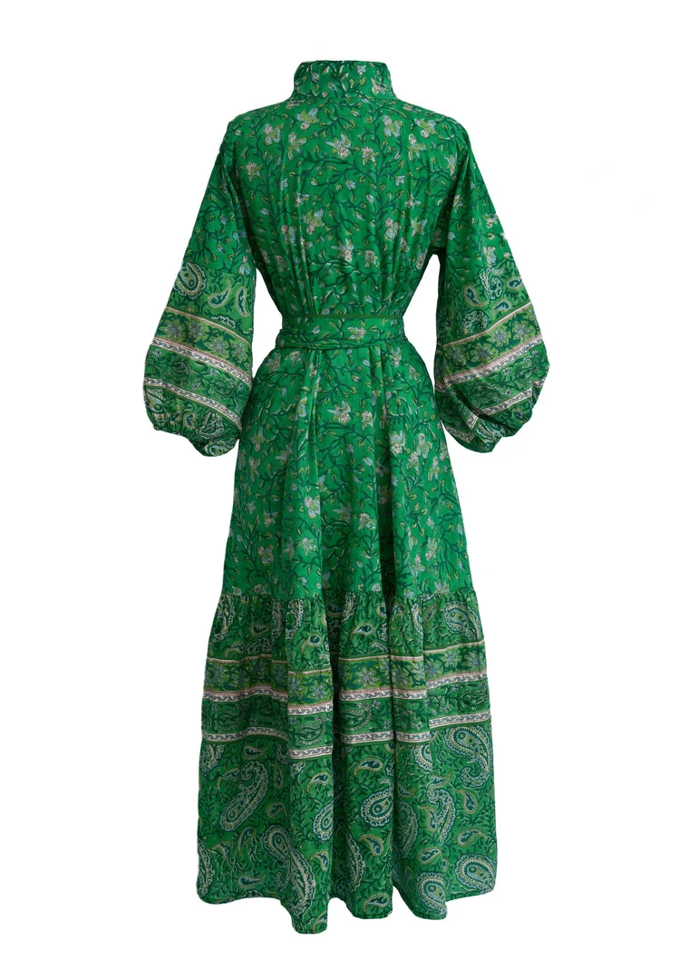 This iconic closet favorite is a wear everywhere comfy dress that is is hand pieced and piped out of the finest textiles using only natural cottons & silks. It is easy, fun and flouncy, has pockets, and is always well made with love.