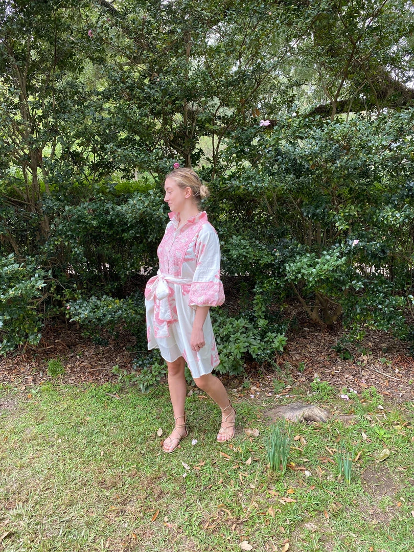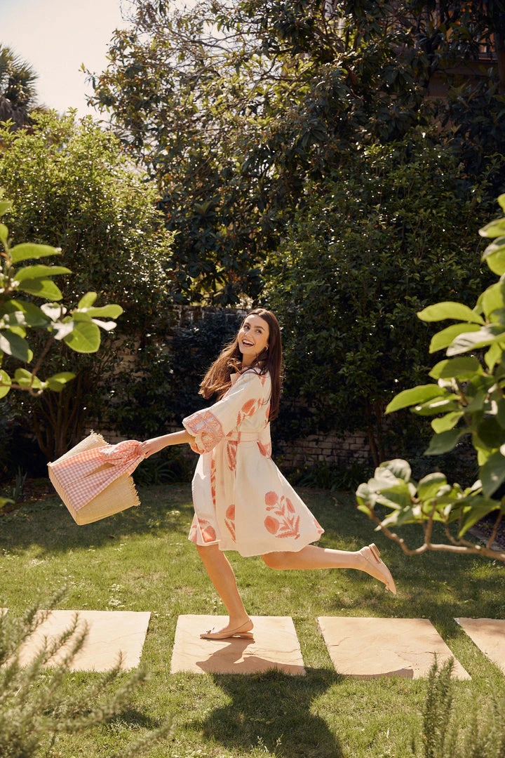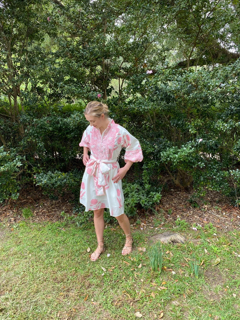 The Sue Sartor Flounce™️ Shorty is a short version of my classic go to on the Sue Sartor Flounce™️~the original Paloma Flounce Dress. This blush pink marigold print sweet shorty is a darling textural beauty! She will become a versatile & comfy travel ready fave.