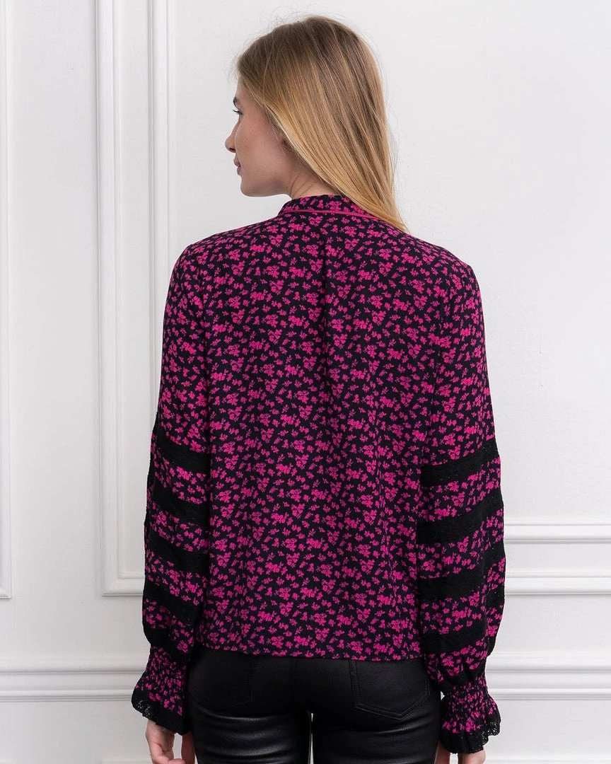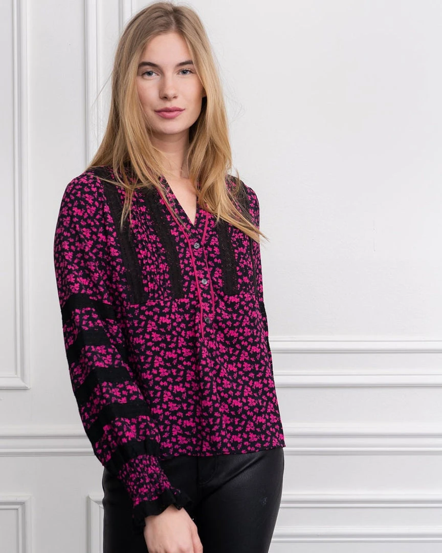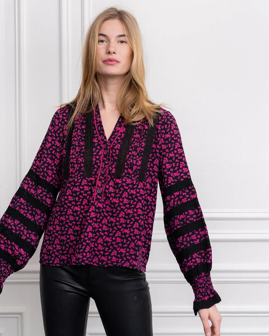 Lace insets on the shirt’s front panels and on the billowing sleeves. In our lightest weight fabrics that will take you straight into summer.Â