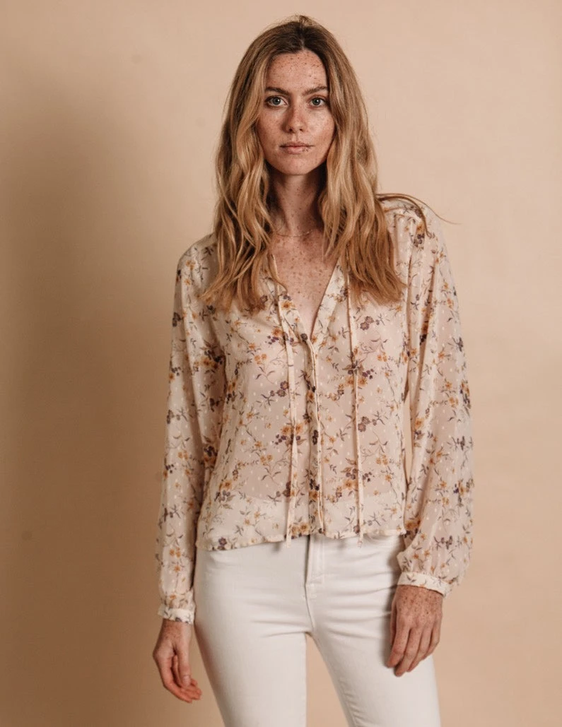 A tie neck and slightly sheer fabric give this shirt rock star vibes.