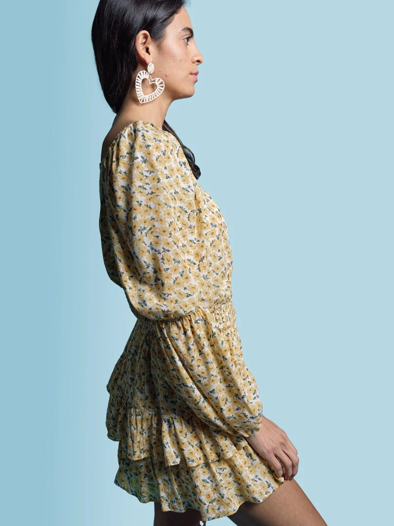 For those that love a fashion moment. Puffed shoulders, a sweetheart neckline, pattered buttons, an elasticated ruched back and a hemline that hits right at the waist. Perfection. Wear with a high waisted bottom or bare a little bit of skin.