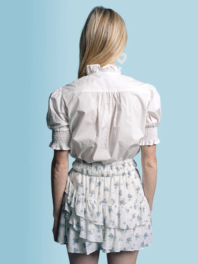 Our best-selling Nicole Shirt is back for spring in all new colors and prints. A smocked front and looser body that hits as the hip.