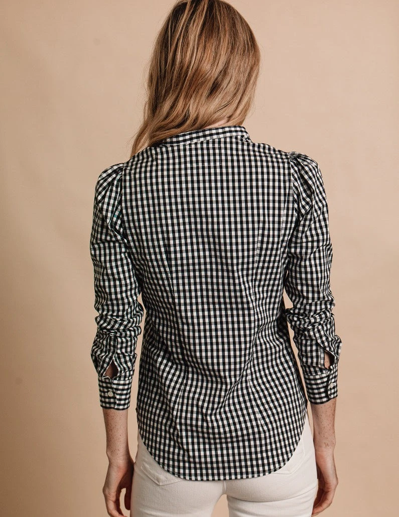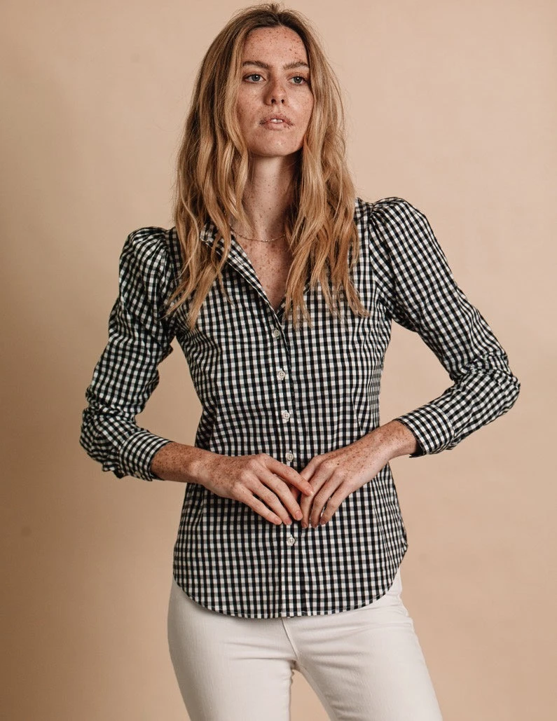 For business or pleasure, our puffed shoulder shirt is shapely in all the right places. Our perfect fit, but with a twist as the shoulder and with a stand collar.