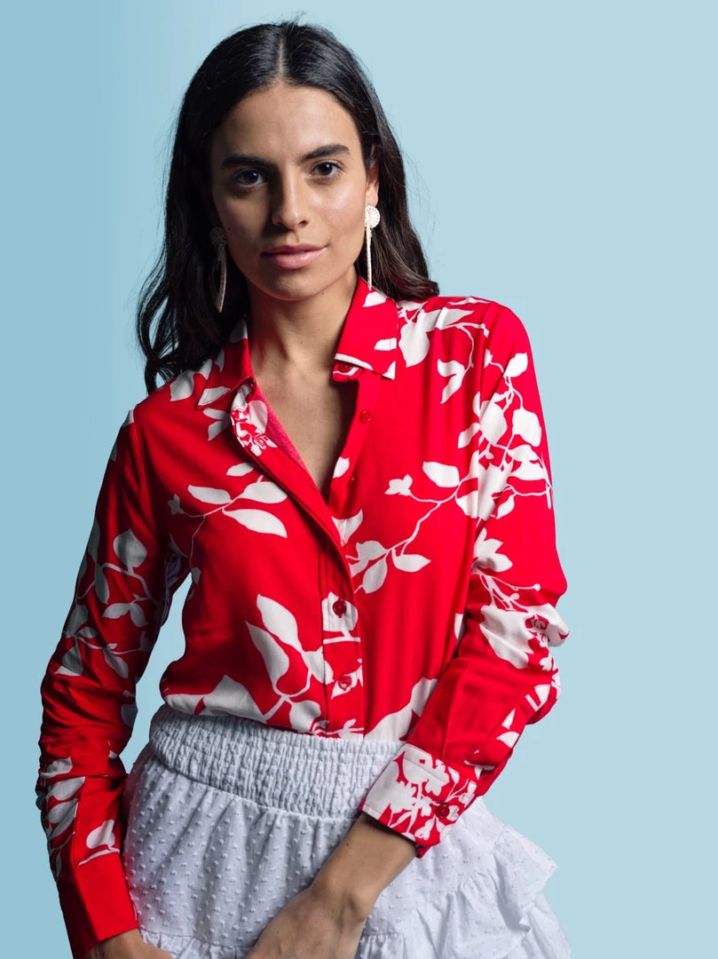Wear this to the office or on vacay.  It goes both ways.  In our drapey, soft shirting that feels so good on.Â