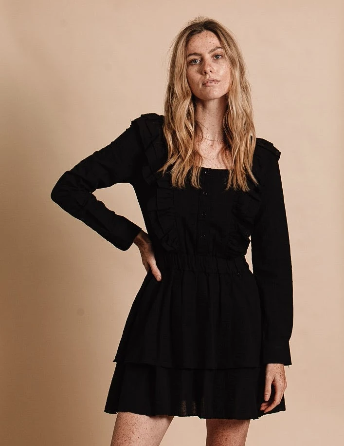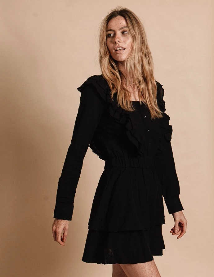 Subtle ruffles line the bodice of our popular Stella Dress. Finally a button down dress you can wear.Â