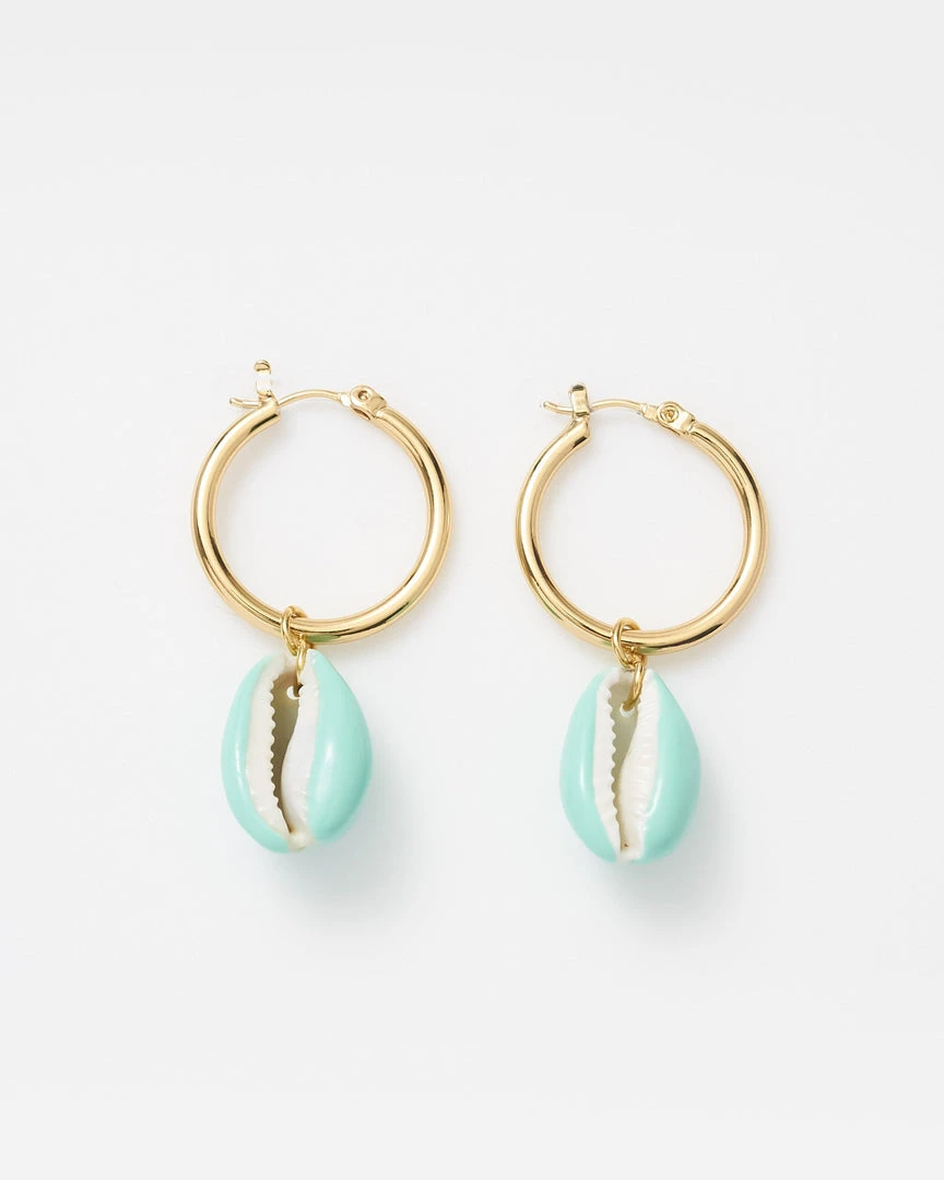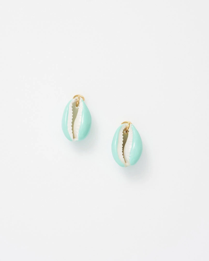 Beachy and effortless with a bit of refinement. This hand-enameled seashell, with a flattering pop of mint, is the perfect add-on to hoop earrings.Â