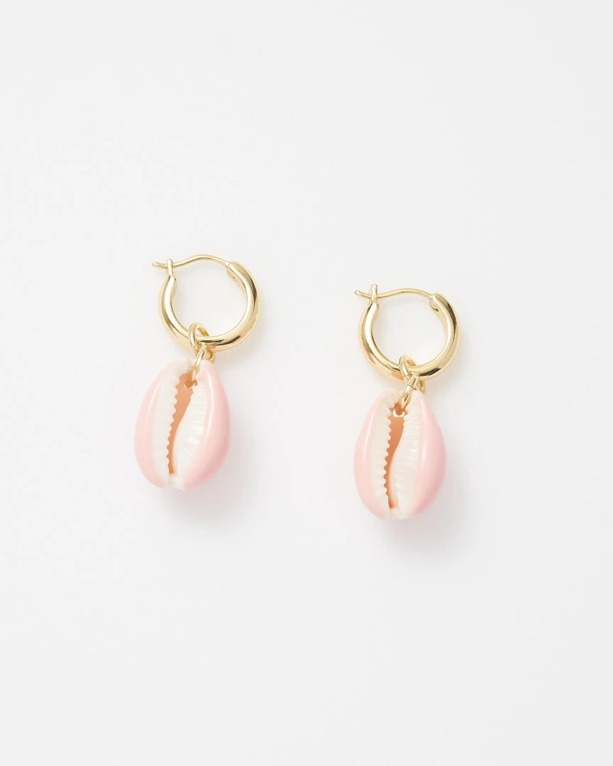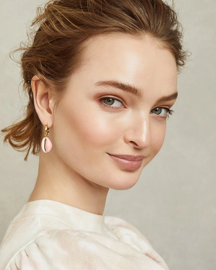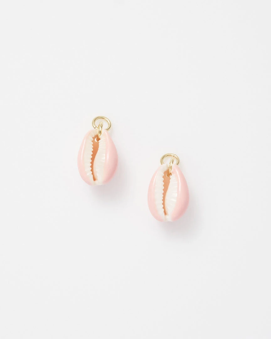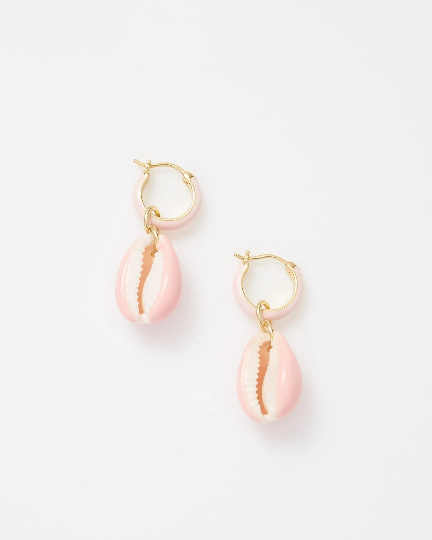 Beachy and effortless with a bit of refinement. This hand-enameled seashell, with a flattering pop of pink, is the perfect add-on to hoop earrings.Â