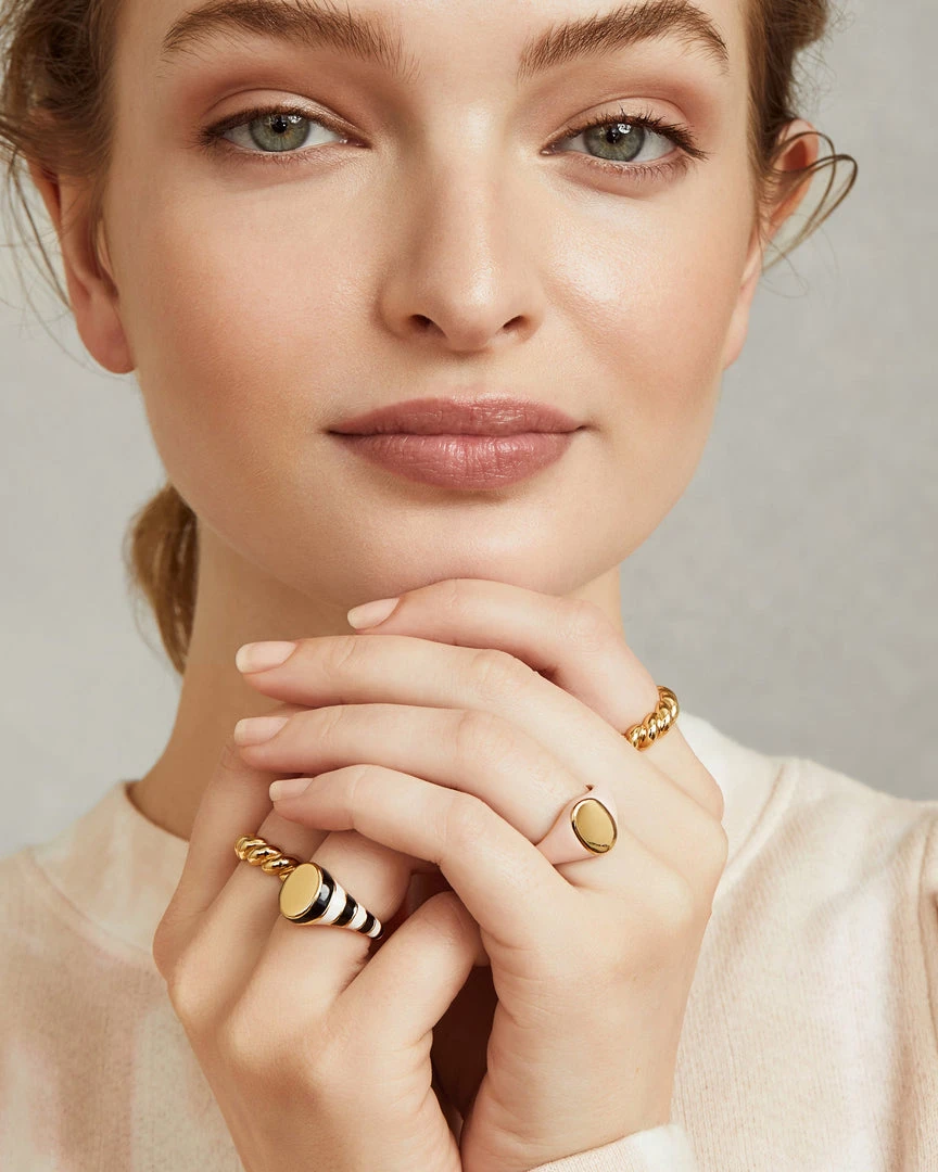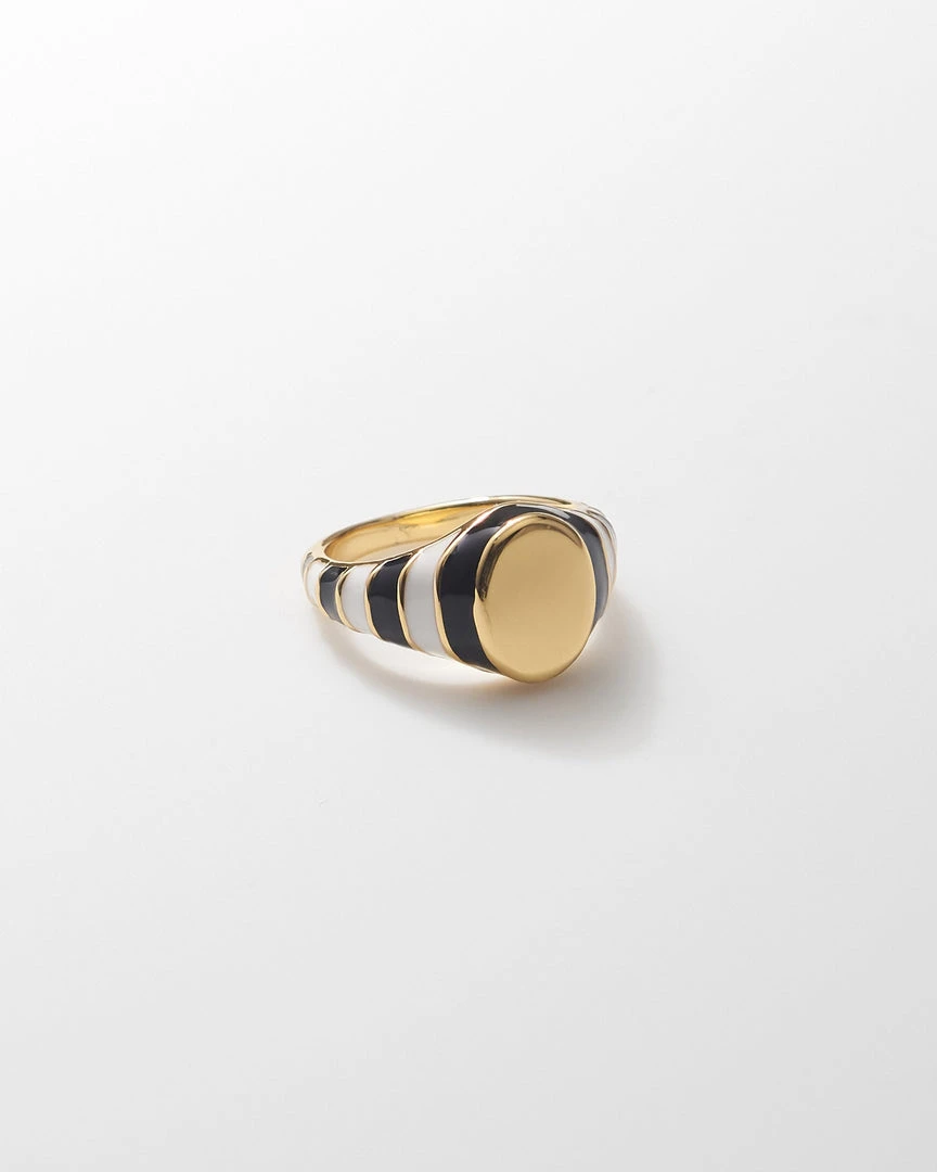 Make it personal. Our vintage-inspired signet ring is hand-enameled with a modern black-and-white design and finished with a luxuriously thick layer of ethically-sourced gold plating that’s perfect for a custom engraving.Â